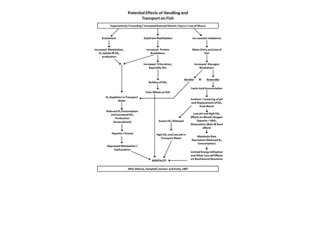 When fish are panicked respiratory rates increase dramatically, resulting in osmotic imbalance as ions are lost across gill surfaces. If fish are crowded, frightened or held under conditions that result in increased demand for and/or reduced levels of dissolved oxygen, blood may be shunted away from internal organs to circulate directly through more “vital” systems such as the heart, brain and musculature. This can result in the total loss of developing oocytes or spermatocytes, even in the advanced stages.
