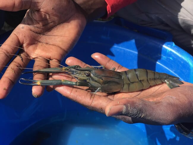 While the thinking behind the project is hard to argue with, the reality of breeding Macrobrachium has proved more of a challenge than anticipated. However, with help from Macrobrachium expertise from Ben Gurion University and Kentucky State University, the researchers have managed to produce enough prawns to work with – keeping those they restock inside netted-off sections.