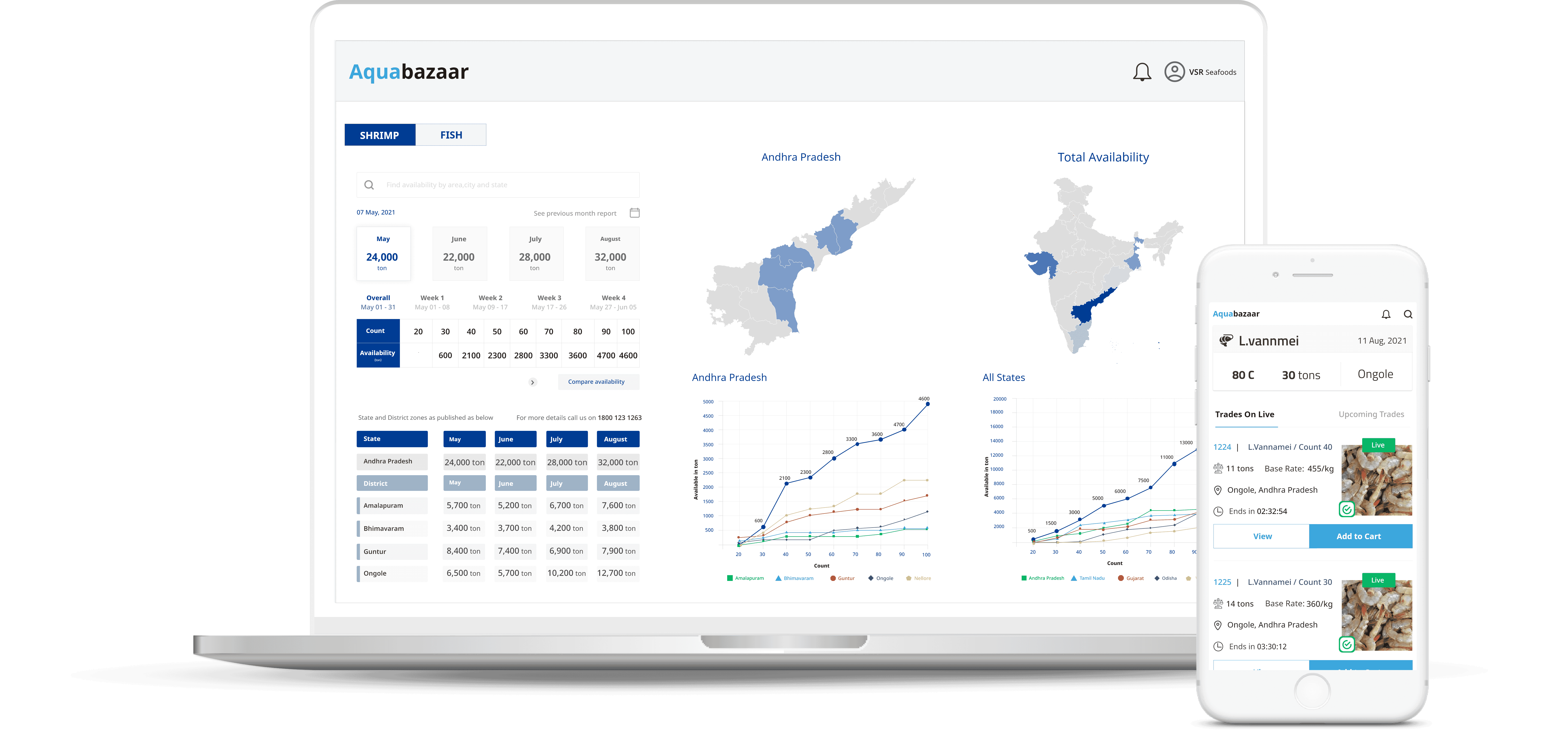As the Aquaconnect* app captures end-to-end farm production data, we are leveraging this data-intelligence to build our digital post-harvest platform, called AquaBazaar. It brings market transparency and connect farmers directly with seafood buyers with complete traceability.