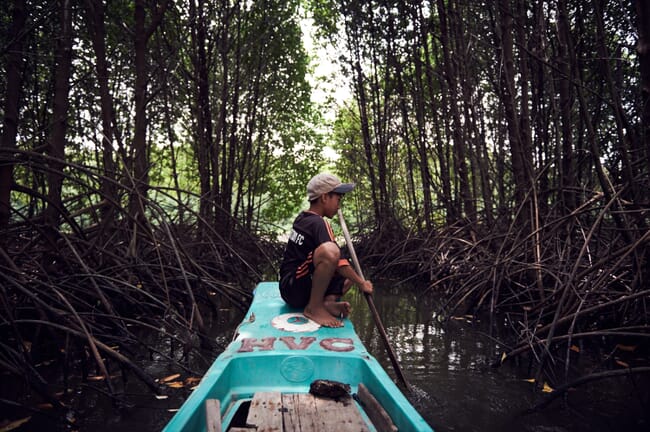 “As much as 80 percent of the area’s mangroves were destroyed during the Vietnam war, when they were hit by the widespread use of Agent Orange. The Vietnamese government has been trying to reforest these areas, in combination with aquaculture, since the 1980s, we didn’t invent the silvofishery concept,” he adds.
