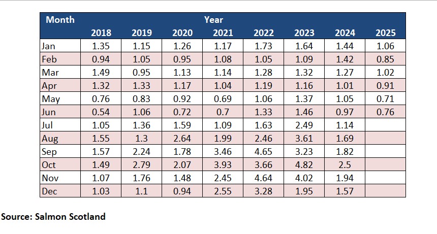 New figures released by Salmon Scotland show monthly survival averaged 99.12 percent between January and June, the best start to a year since data was first voluntarily published in 2018. This reflects continued improvements in fish health and environmental conditions.