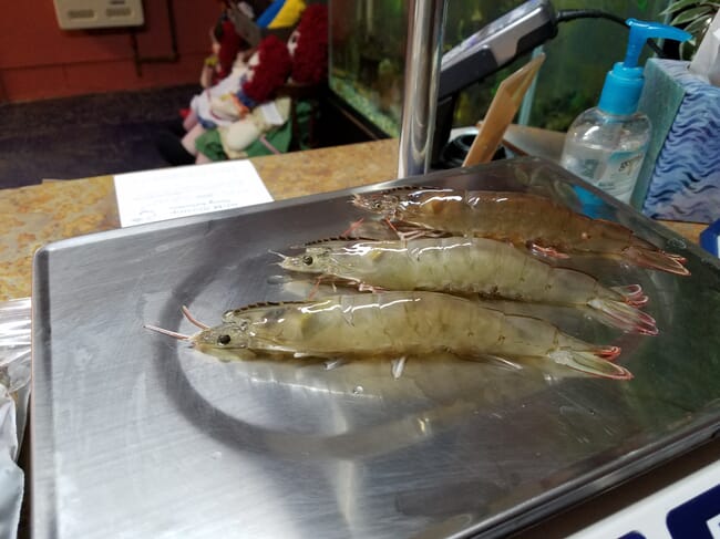 In all fairness, raising shrimp in tanks is not a novel concept. In 2004, Baron-Sevilla and colleagues published results from shrimp grow-out trials in a saltwater RAS. Their system had a total volume of 11 m3, of which roughly half was in the culture tank. After five months, they harvested slightly less than 10 kg/m3. For details, see: Ciencias Marinas (2004), 30(1B): 179–188.