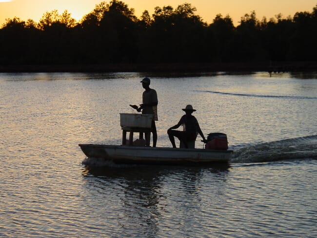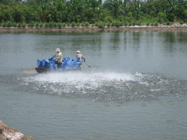 Feeding tiger prawns (Penaeus monodon) in Madagascar